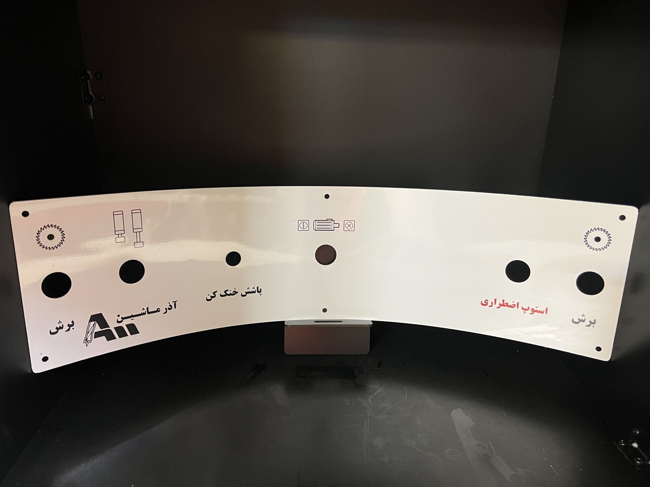 ساخت انواع صفحه کلید برای تجهیزات ، دستگاه ها و ماشین آلات طبق سفارش مشتریان محترم . امکان چاپ طرح بر روی فلزات استیل و الومینیوم و غیر فلزات پلی کربنات و پلی استر ، برش کاری و سوراخ کاری صفحه کلید طبق درخواست و نقشه سفارش دهنده.