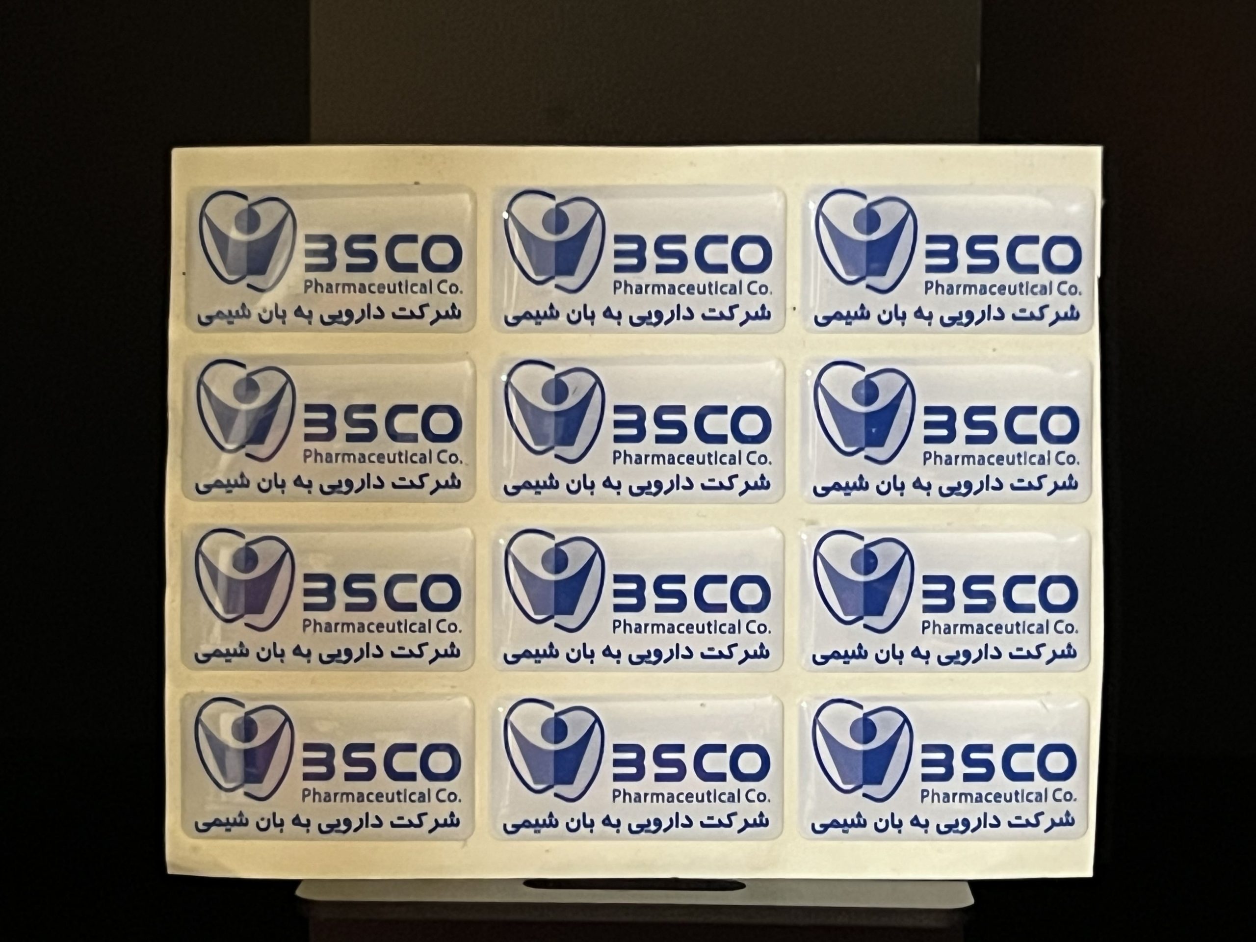 تولید مارک با پوشش رزینی بر روی آن ، درواقع یک لایه شفاف از رزین بر روی مارک پلی استر چاپ شده تزریق می گردد که حالتی براق و با دوام بالا به مارک می دهد.