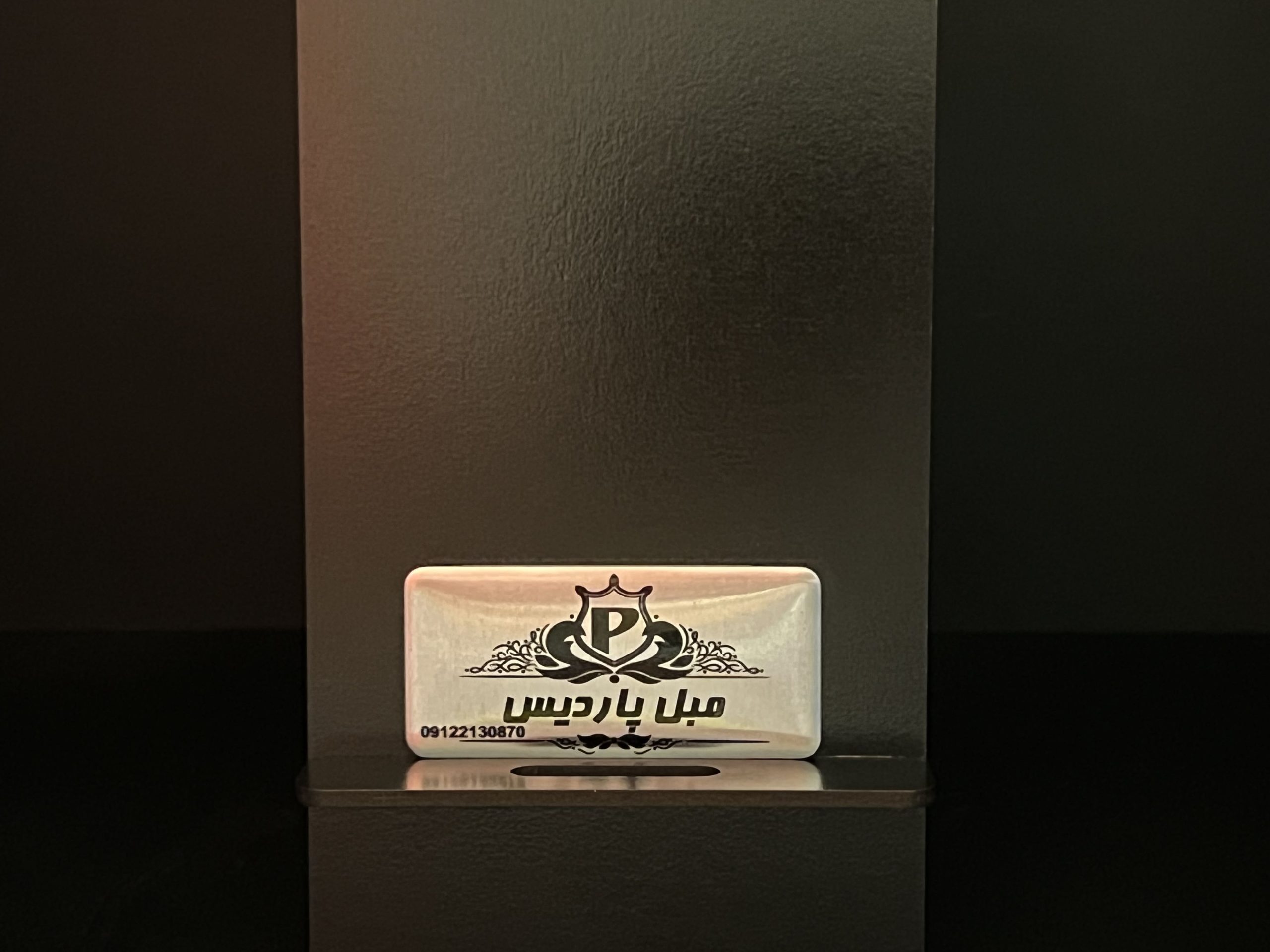 پلاک فلزی با چاپ لوگو و برند شرکت های سازنده مبلمان خانگی و اداری جهت نصب بر روی محصولات و مبل های تولید شده.