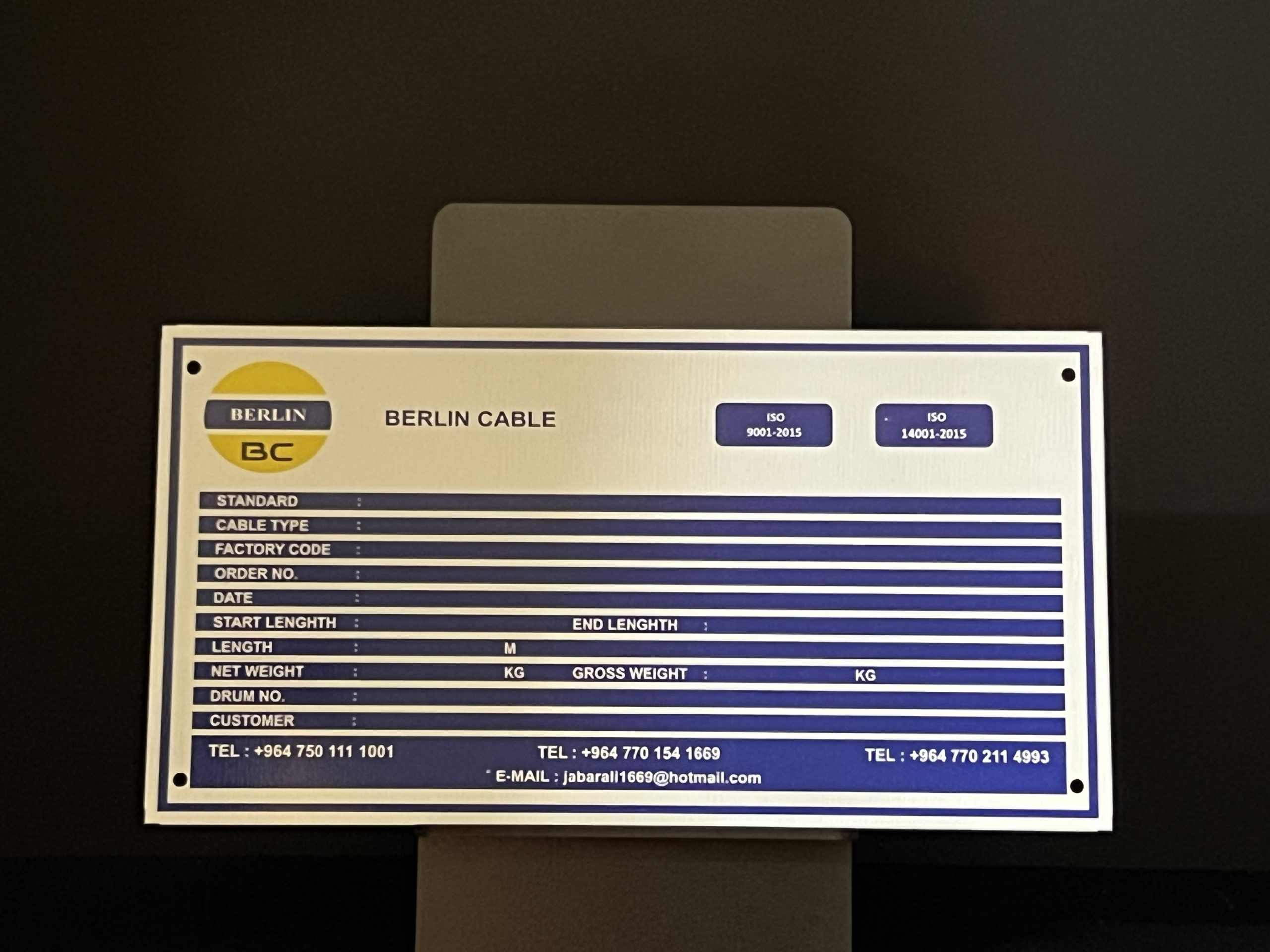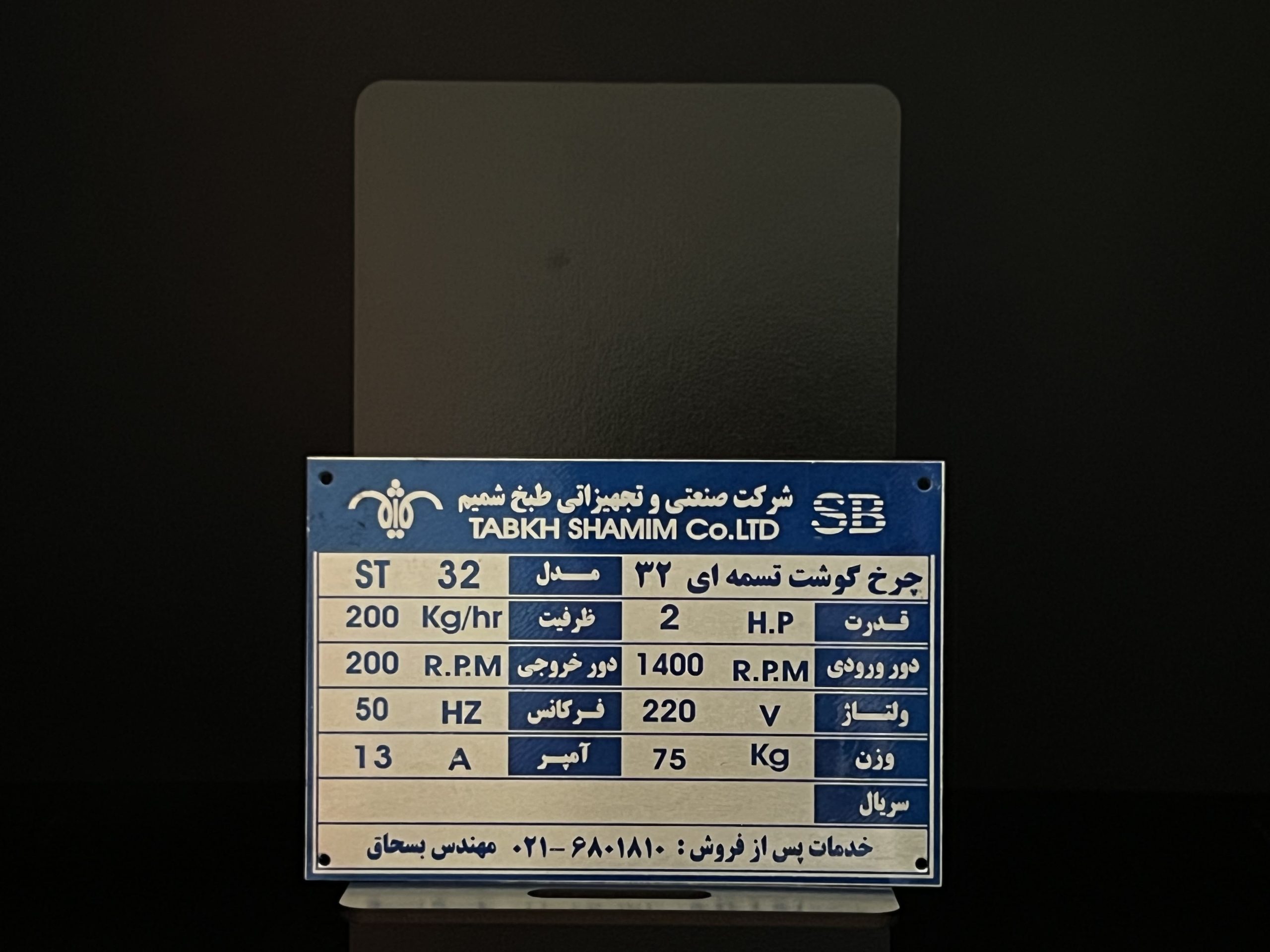 تولید پلاک مشخصات با استفاده از ورق های فلزی استیل و آلومینیوم جهت درج مشخصات تجهیزات و محصولات شرکت ها و تولید کنندگان محترم.